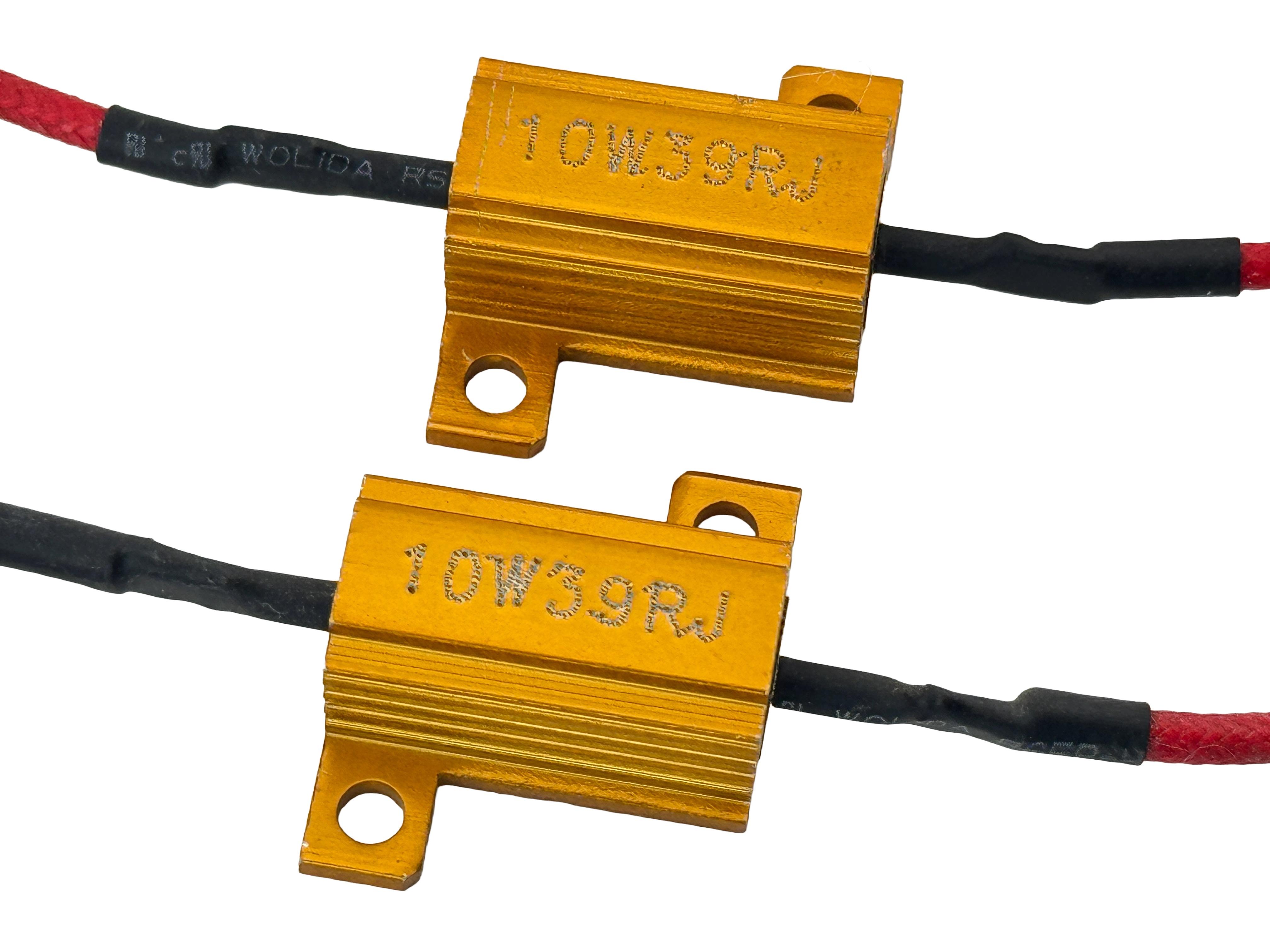 This Rebaydo 2pcs 39 ohm 10 watt low voltage load equalizer is designed to stop hyper flashing or fast flashing caused by LED bulbs. It simulates the electrical load of an incandescent bulb so the vehicle electronics do not detect a failed lamp, helping eliminate OBC error messages and bulb-out warnings related to lighting systems. It is commonly used when converting incandescent bulbs to LED for side marker lights, parking lights, license plate lights, and interior lighting circuits that trigger bulb-out detection. It can also help correct CANBUS light errors where the vehicle computer expects the load of a traditional bulb. Each equalizer has a resistance of 39 ohms with a 10 watt power rating and includes two quick crimp connectors for easy installation. Two load equalizers are included per package and each unit is tested before shipment. CE and RoHS listed.