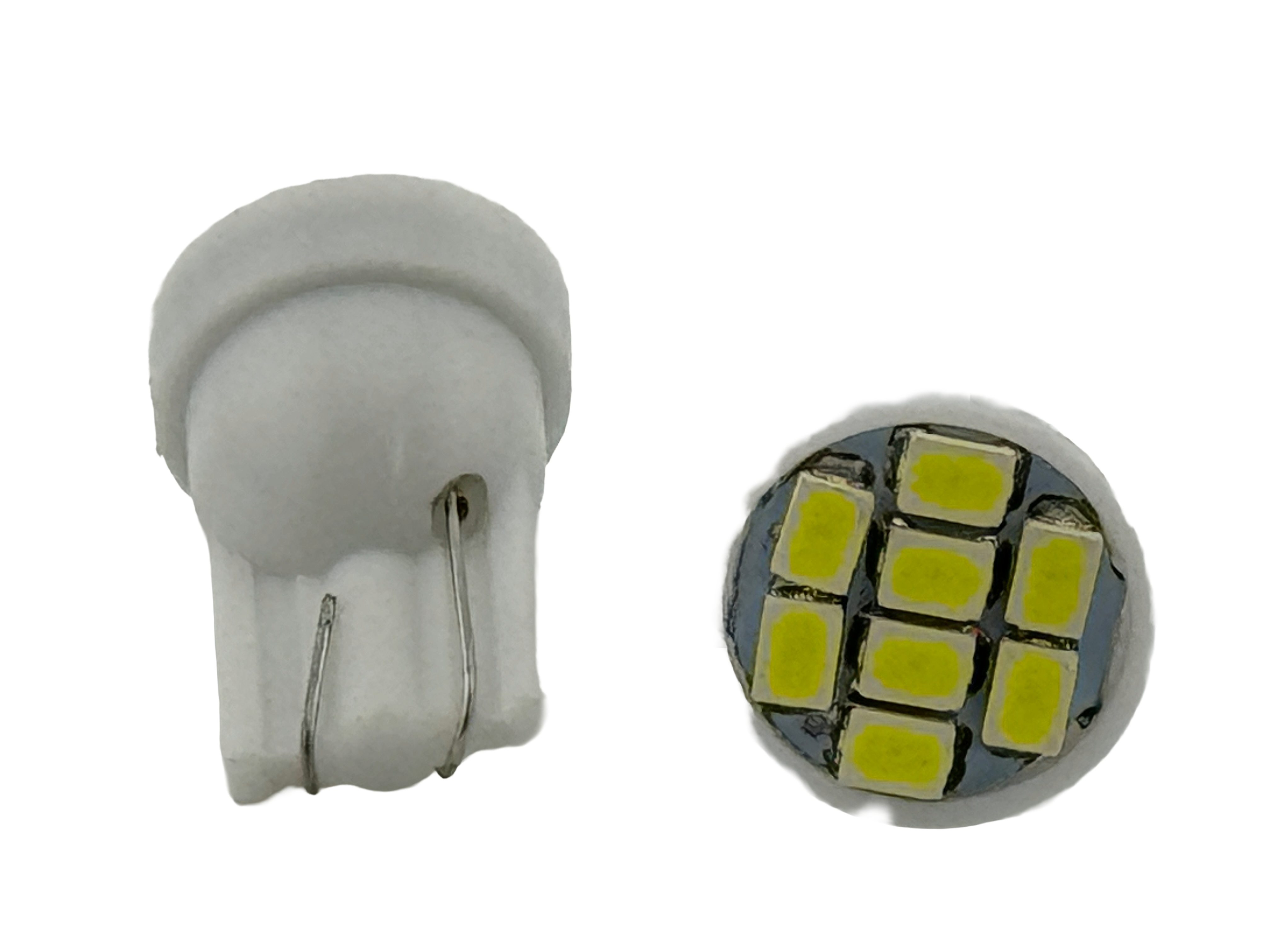6 Volt LED Bulb Non Polarity T10 Wedge. Works either Positive ground or Negative Ground. For 6.3 Volt AC/DC non polarity vintage and classic vehicles and motorcycles, scooters. 120 degree viewing angle. Long life up to 30,000 hours. Available in White 6000K, Warm White 3000K, Red 625 nm, Green 526 nm, Blue 464 nm & Yellow 594 nm. Up to 50 Lumen output. Forward firing led's. Approximate dimensions 0.63" length and 0.44" max width, the wedge is dimension is 0.35" wide. Dimmable, comparable to a 4 to 9 Watt incandesce bulb. Fits a standard T10 wedge socket. Compatible with: T10 W5W 192 158 168 194 2825 555. CE and Rohs.