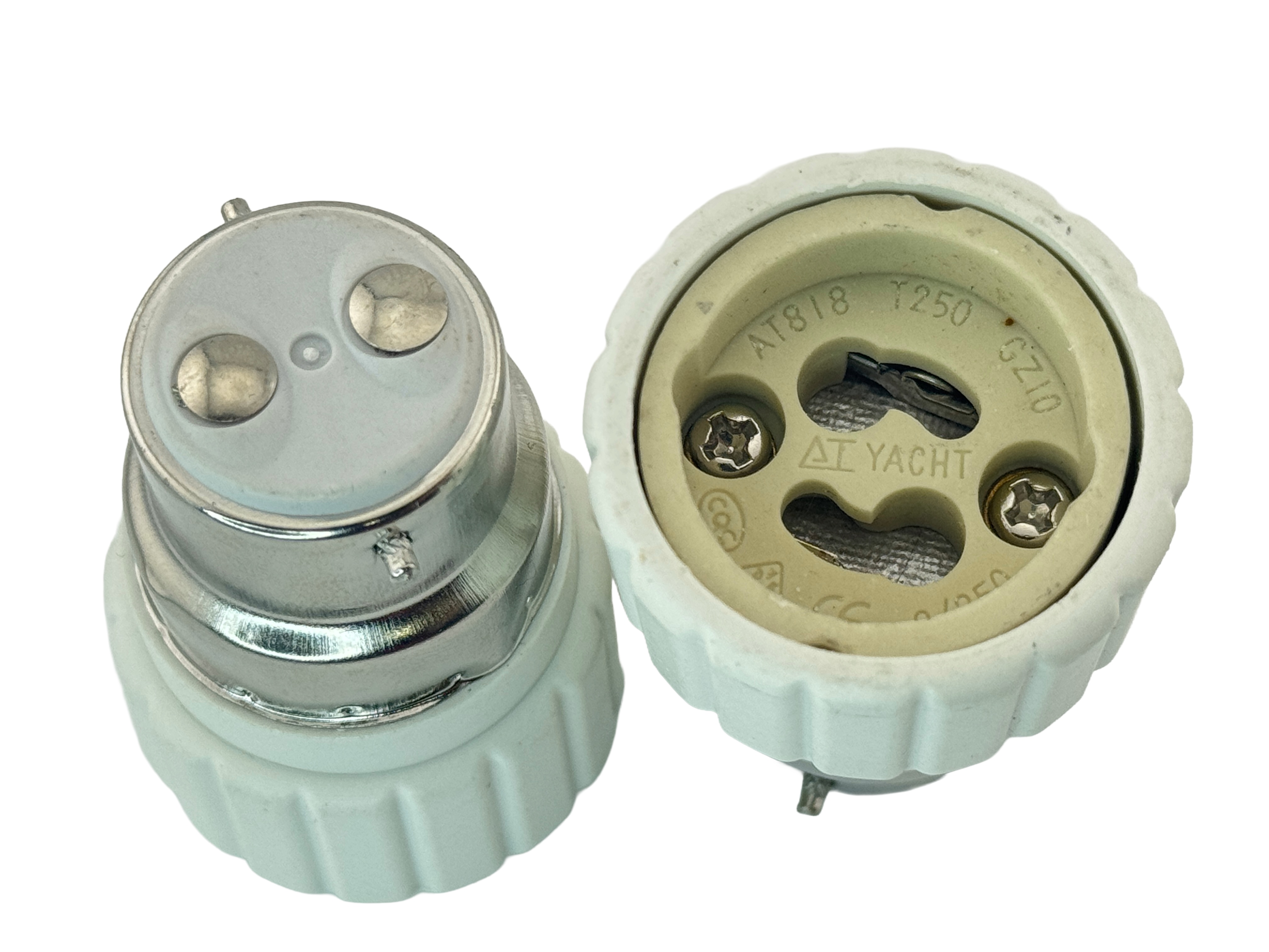 B22 male to BA15D female Adapter Socket. Made of flame retardant PBT and metal materials. Rated at 2200 watts @ 220V 10 amps. CE and ROHS listed. |