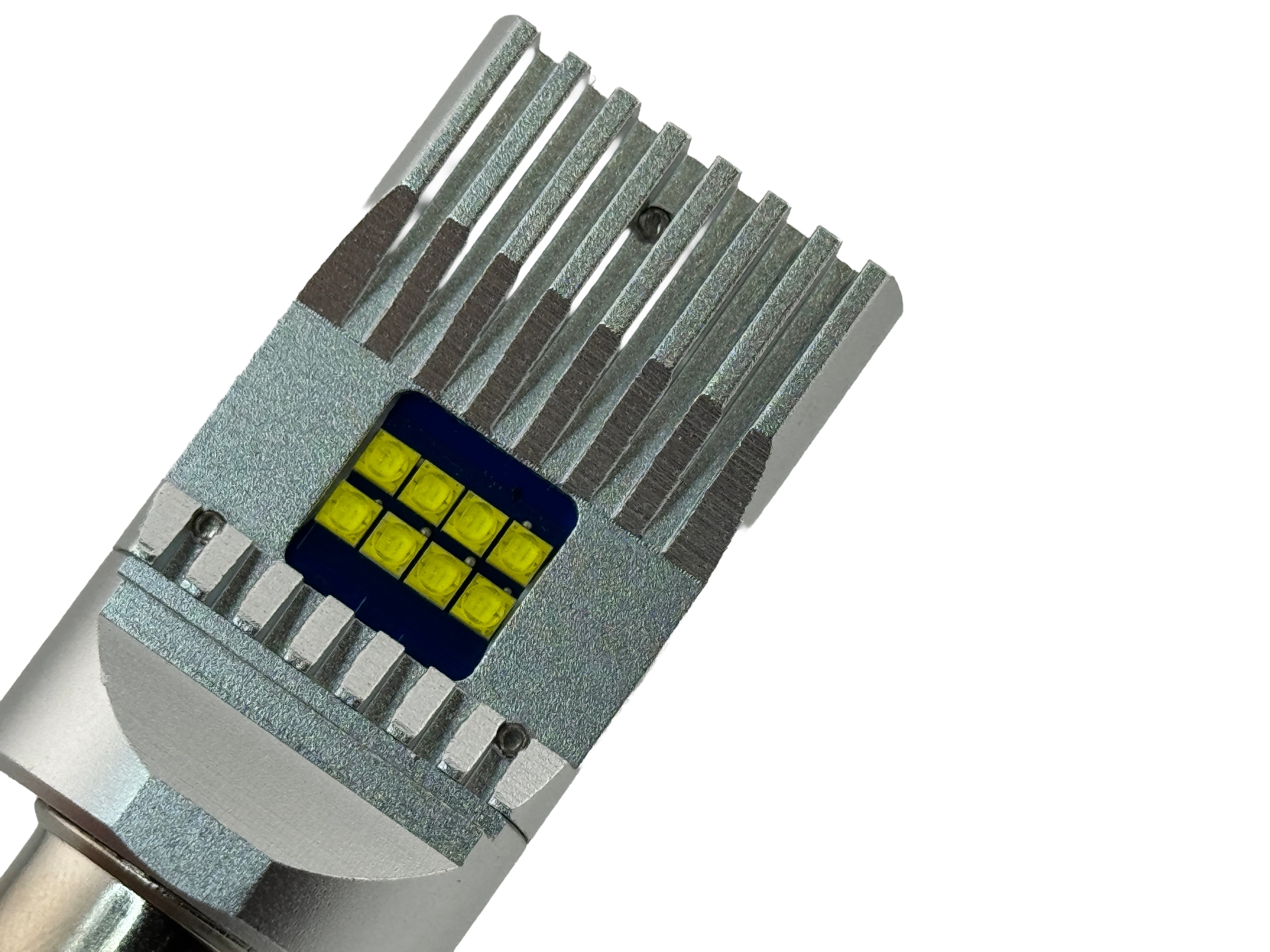 BA15D LED Headlight 5 To 30 Volt Single Filament Non Polarized. Up to 1800 Lumens. 1142 Configuration meaning ground on one contact and 5 to 30V on the other contact. Up to 30,000 hours for long life. Great for older vehicles generators. Easy to install remove old bulb and install this lamp. Works either positive ground or negative ground. Body made of aluminum for long life. Available in 6000-6500 Kelvin. Great for 6 volt, 12 volt up to 30 volts. Load equalizers may be required, if the bulb will not switch from low beam to high beam or if the bulb flickers when installed. Please install led light load equalizers to fix the problem product code 65832. Full bright at any voltage from 5 Volts to 30 Volts. Uses approximately 1.4A @ 6 volts. Overall length is 2.52 inches. Width is 0.98 inches. Length of the body above the BA15D base is 1.77 inches.