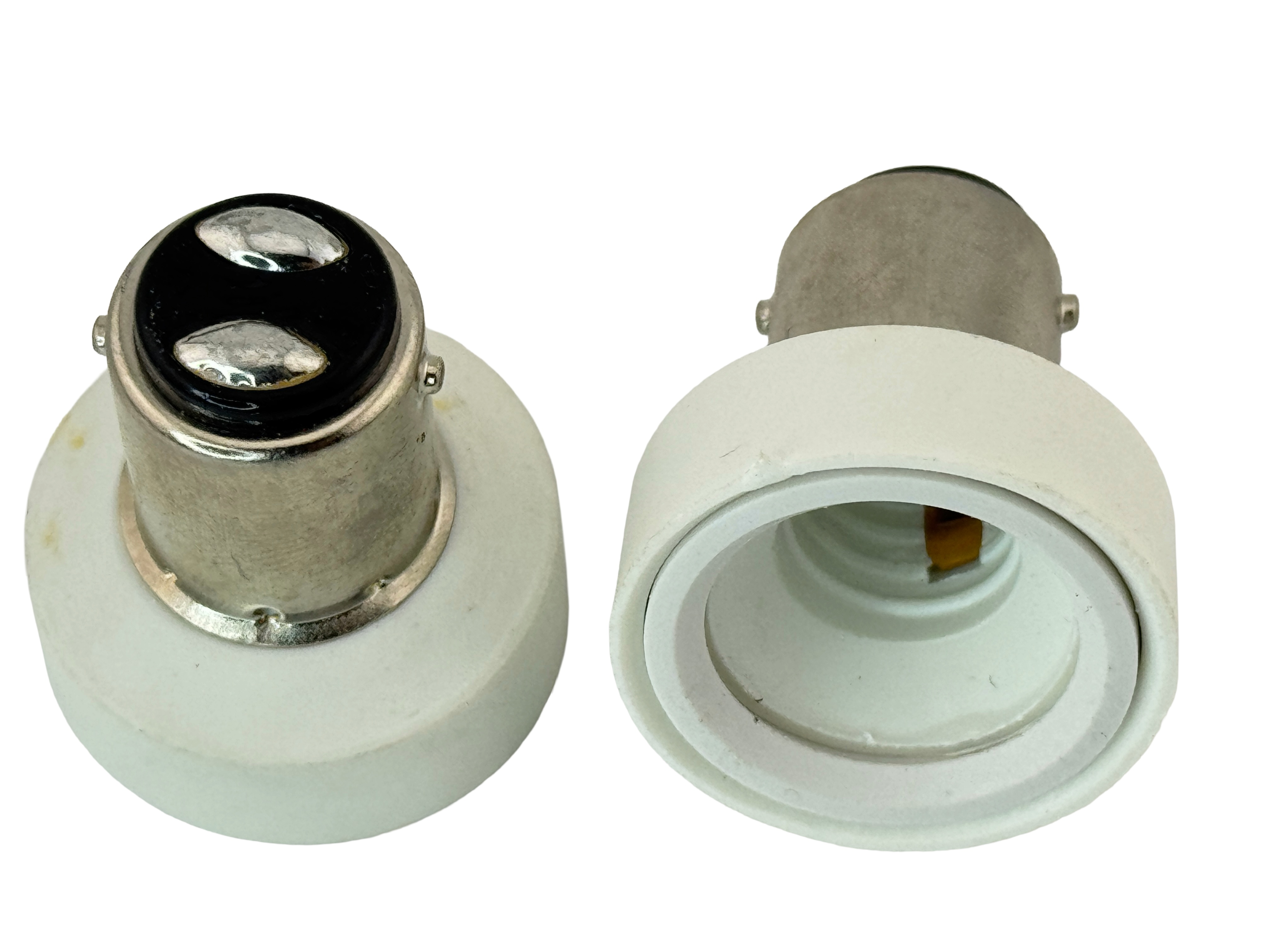 This Rebaydo 2pcs BA15D (Male) to E12 (Female) Converter Adapter allows E12 candelabra base bulbs to be used in fixtures with an existing BA15D bayonet socket without modifying or replacing the fixture. Its compact design makes it ideal for tight-fit lighting applications, and the metal-clad housing with PVC construction and copper electrical contacts ensures reliable conductivity and durability.