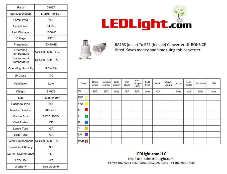 BA15S (male) To E27 (female) Converter UL ROHS CE listed. Saves money and time using this converter.