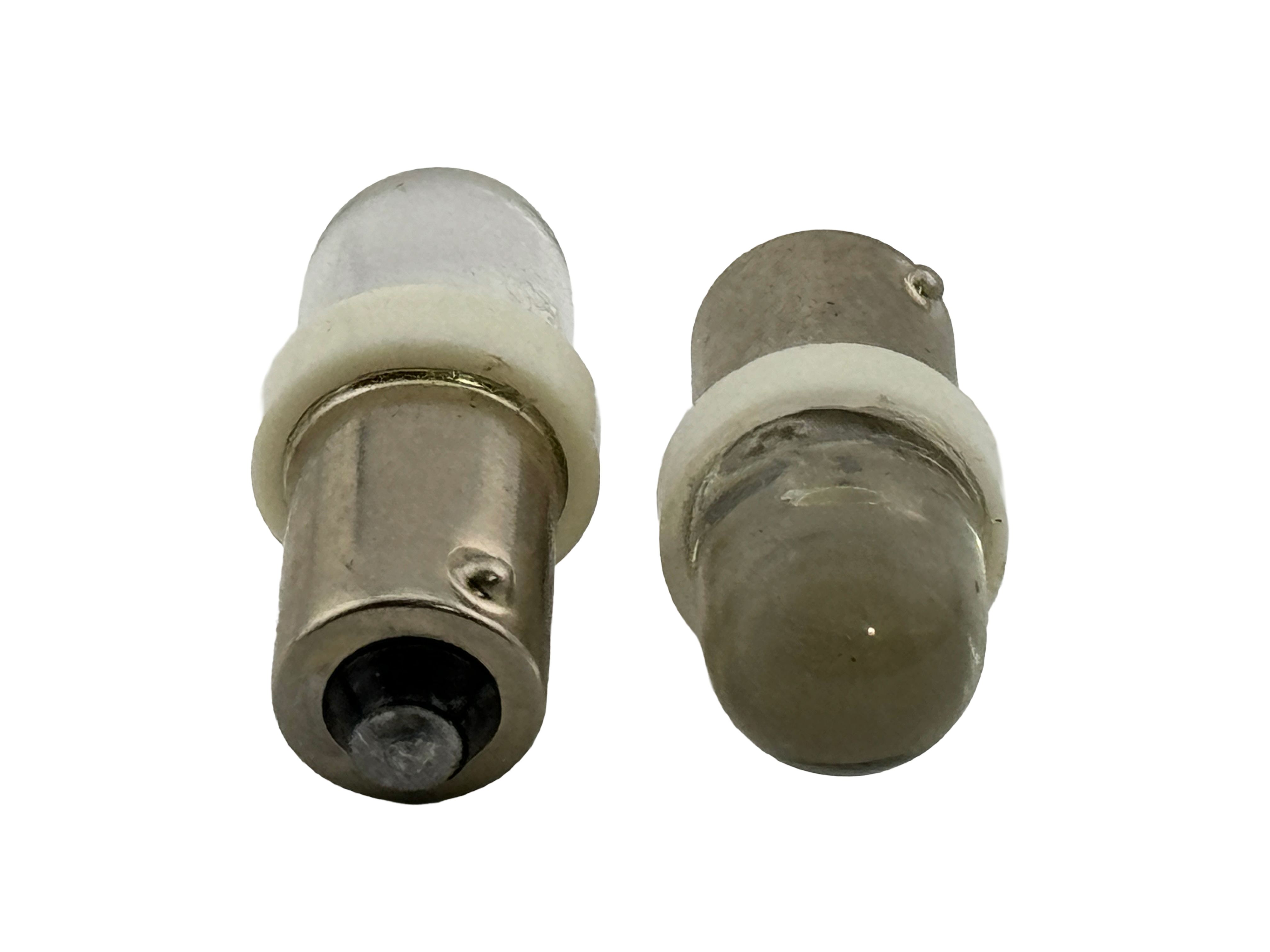 BA9S 1 Ultra Bright LED. 1 Watt output. 12 VDC. Available in red, yellow, super white, green and blue. Up to 70 lumen output, 120 degree viewing angle, comparable to a 10 watt incandescent bulb. |
