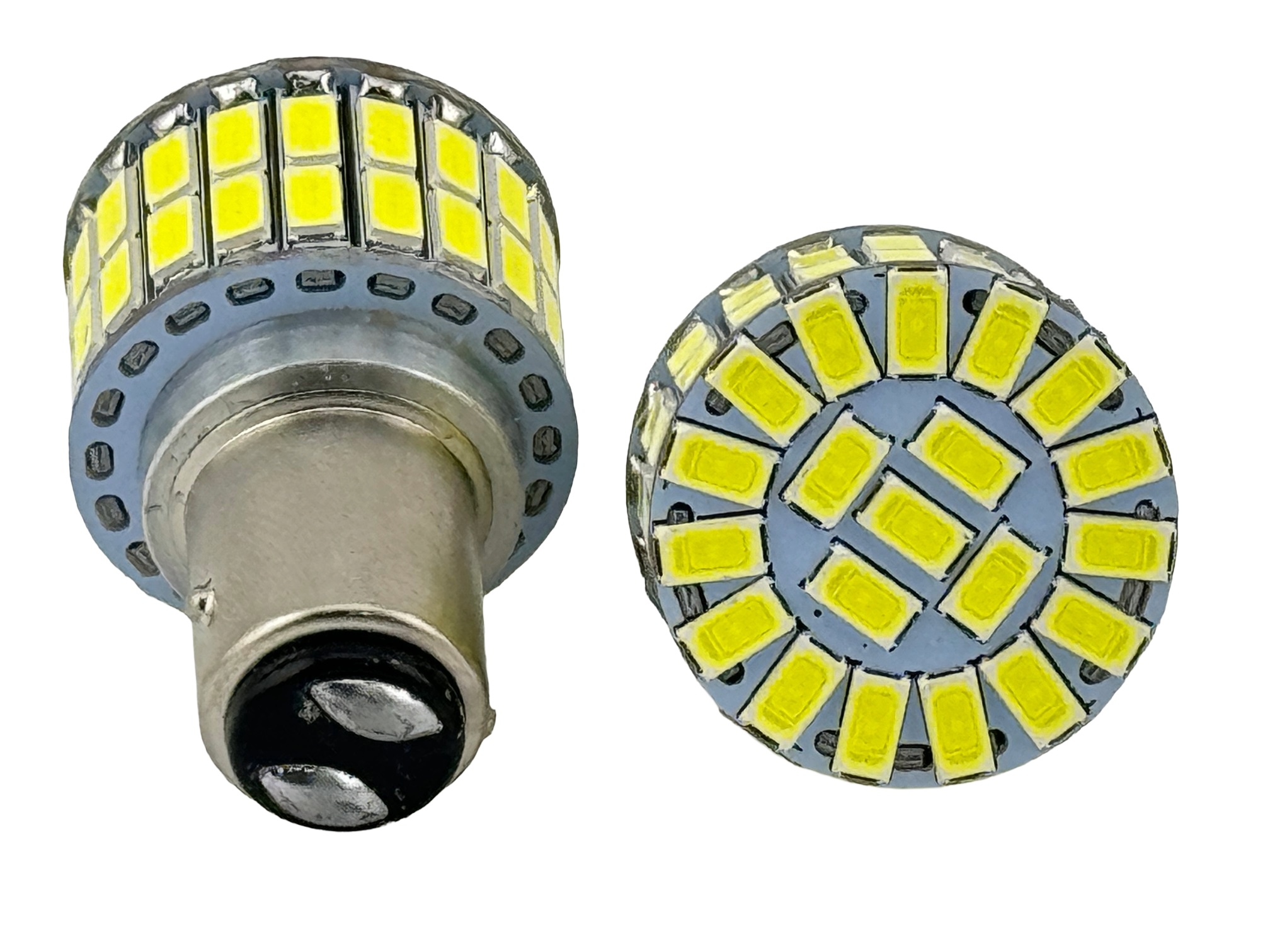 Rebaydo 2pcs. BAY15D 1154 6 Volt 60 SMD 5730 Dual Filament Reduced Profile. This bulb operates 6v positive ground or 6V negative ground. Up to 950 Lumen output for brake light and up to 750 Lumens for tail light. Long life up to 30,000 hours. Made with total 60 leds, 44 side firing and 16 forward firing. This lamp is a two filament bulb. The base has offset bayonets and two contact on the bottom. This bulb is only designed for 6 volt vintage vehicles, motorcycles and scooters. Please make sure you voltage is regulated to 6 volts. The light bulb can be dimmed with a variable voltage supply if needed. The leds are aligned to be the optimum height for maximum light output using a reflector and lens. Available in White 6000K, Warm White 3000K, Red and Yellow. Maximum overall length is 1.694". The maximum diameter is 1.058". These lights led are solid state for low power and super long life. SMD means surface mount device it is the square led. Uses about 1A @ 6.3 Volts for the brake light. CE and Rohs. Compatible with: