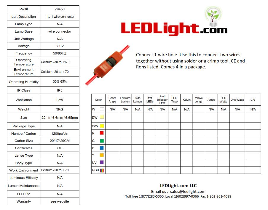 Connect 1 wire hole. Use this to connect two wires together without using solder or a crimp tool. Comes 4 in a package. The shell is made of imported polycarbonate material, abrasion resistance and oxidation resistance, UL 94V-0. The contact conductor is made of high-precision pure copper. The surface treatment of contact conductor is made of pickling, plating, environmental protection and oxidation resistance treatment. The rated voltage is 0-36V. The rated current is 9A. The working ambient temperature is 0-40 ℃. The temperature resistance is - 20-120 ° C. The flame retardant grade is conforming to UL-94-V0. The minimum cross section is 0.35 mm ² 22awg. The maximum cross section is 0.75 mm ² 18awg. CE and Rohs listed.