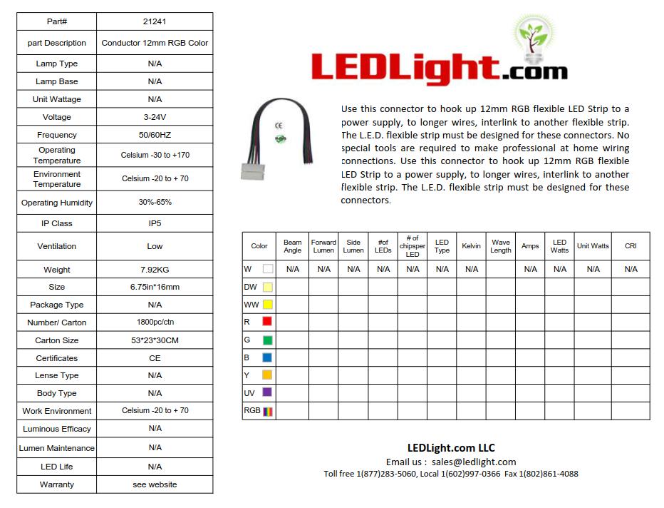 Use this connector to hook up 12mm RGB flexible LED Strip to a power supply, to longer wires, interlink to another flexible strip. The L.E.D. flexible strip must be designed for these connectors. No special tools are required to make professional at home wiring connections. Use this connector to hook up 12mm RGB flexible LED Strip to a power supply, to longer wires, interlink to another flexible strip. The L.E.D. flexible strip must be designed for these connectors.