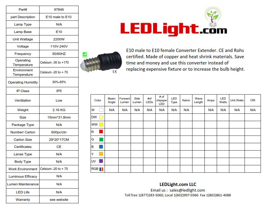 E10 (male) to E12 (female) Converter/Adapter. Use this adapter to convert your E12 LED or incandescent bulbs to E10 Screw base. Save money and time by not having to install new fixture. |