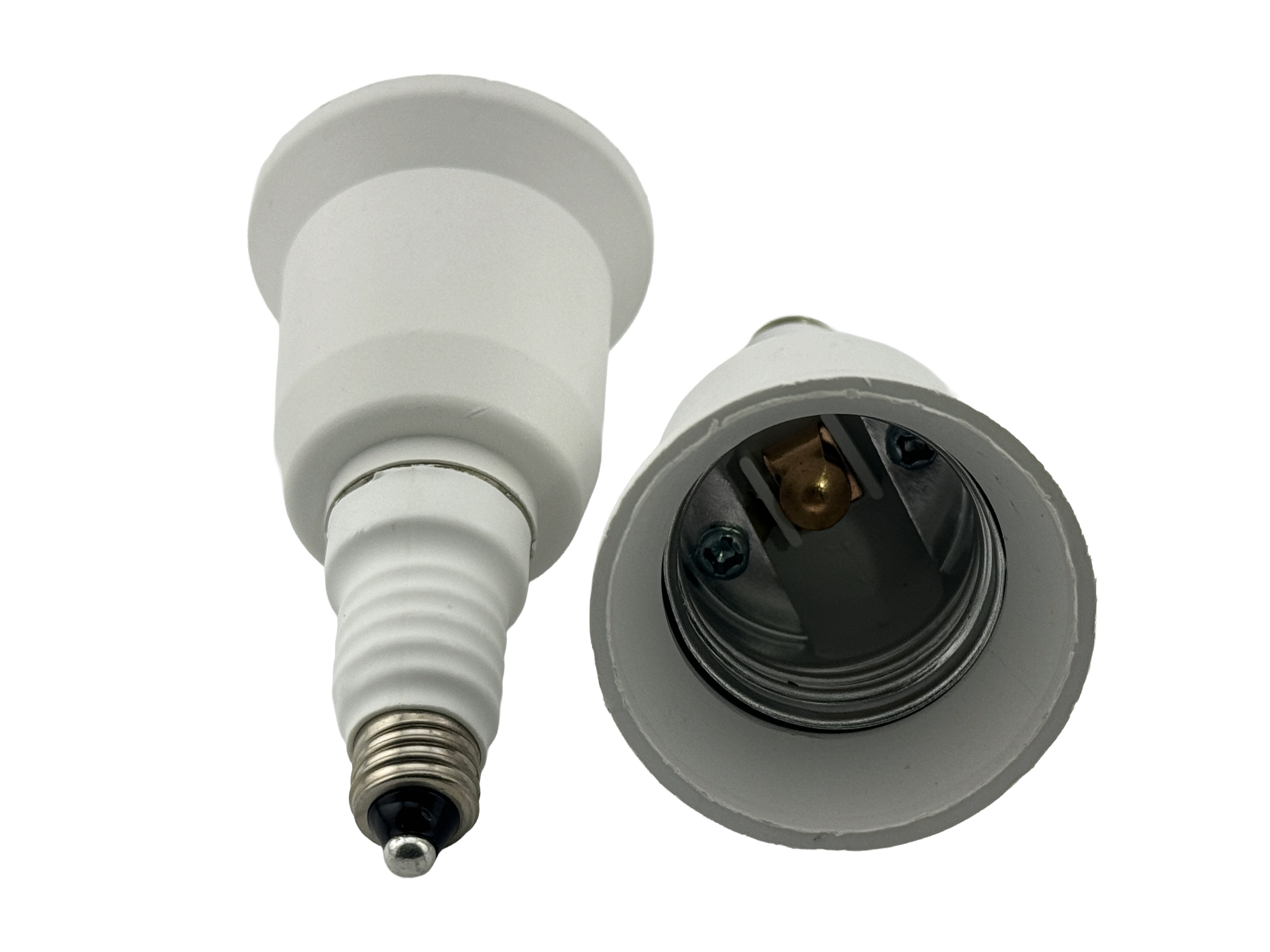E10 (male) to E12 (female) Converter/Adapter. Use this adapter to convert your E12 LED or incandescent bulbs to E10 Screw base. Save money and time by not having to install new fixture. |