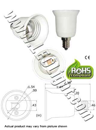 Converts E27 male edison screw base to E12 female candelabra base. Rated 2200 watts. Saves money using a converter adapter than to replace the whole fixture.