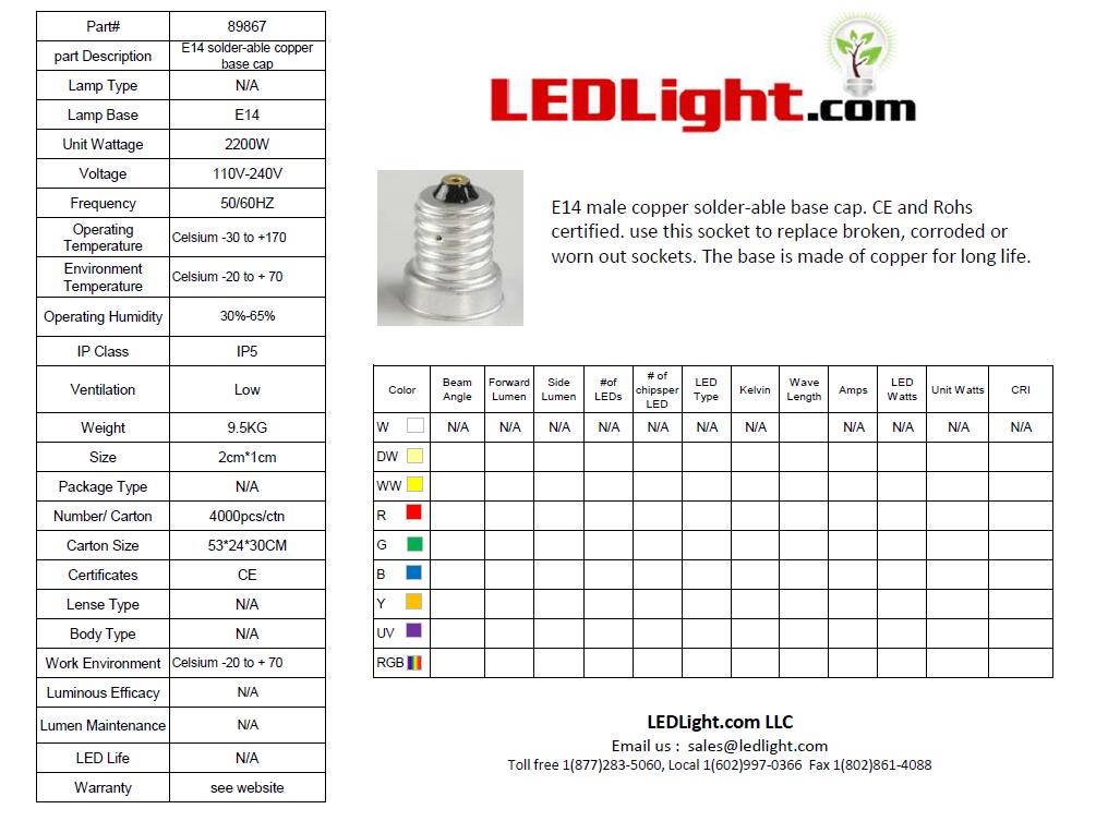 E14 male copper solder-able base cap. CE and Rohs certified. use this socket to replace broken, corroded or worn out sockets. The base is made of copper for long life.
