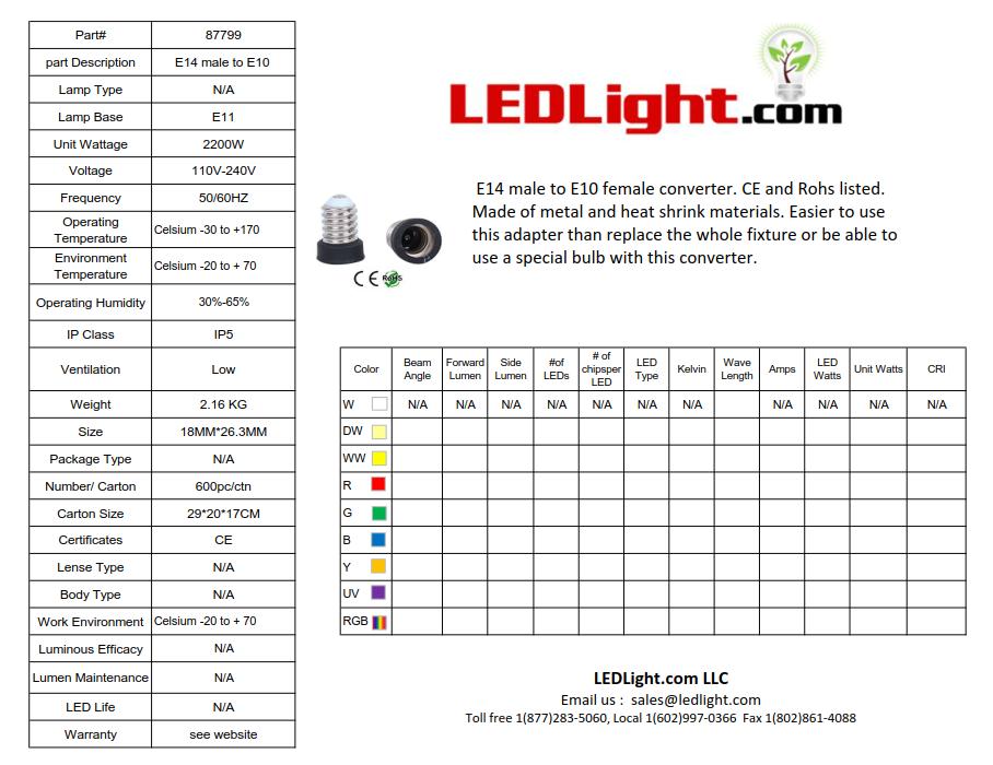 E14 male to E10 female converter. CE and Rohs listed. Made of metal and heat shrink materials. Easier to use this adapter than replace the whole fixture or be able to use a special bulb with this converter.