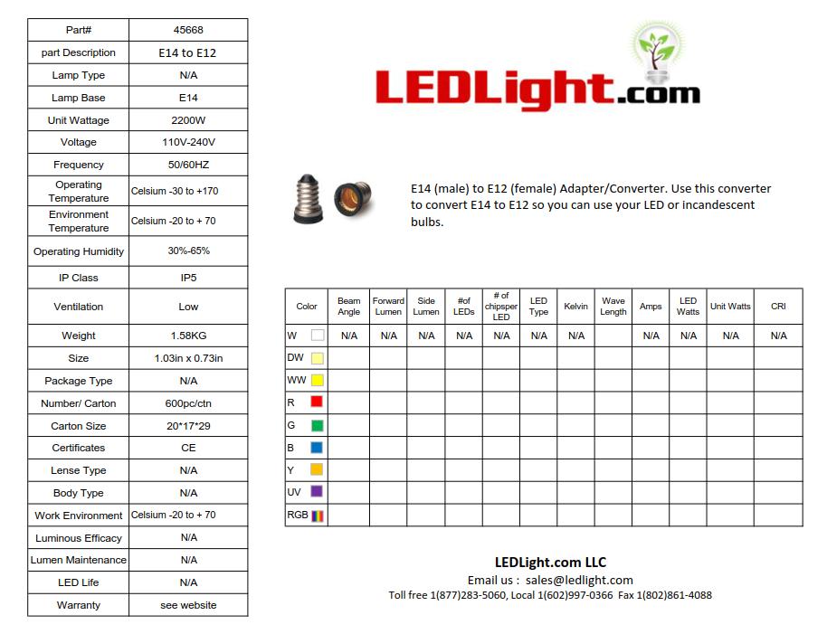 E14 (male) to E12 (female) Adapter/Converter. Use this converter to convert E14 to E12 so you can use your LED or incandescent bulbs.