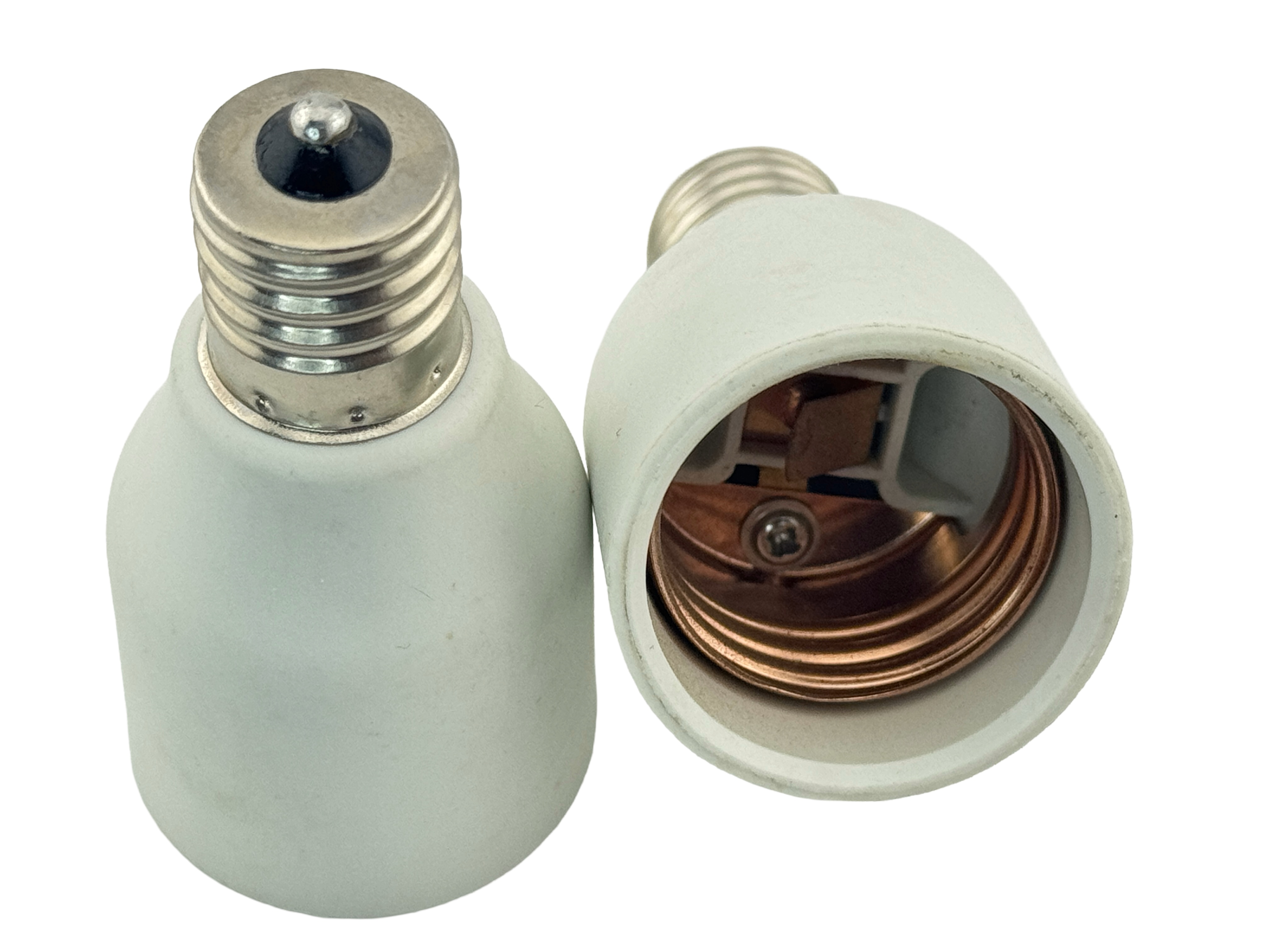 E17 (male) to E14 (female) Adapter/Converter. Use this adapter to convert your E17 screw base to an E14 screw base so you can use your LED or incandescent bulbs. Rated up to 6 Amps and 250V. CE, RoHS & UL certified.
