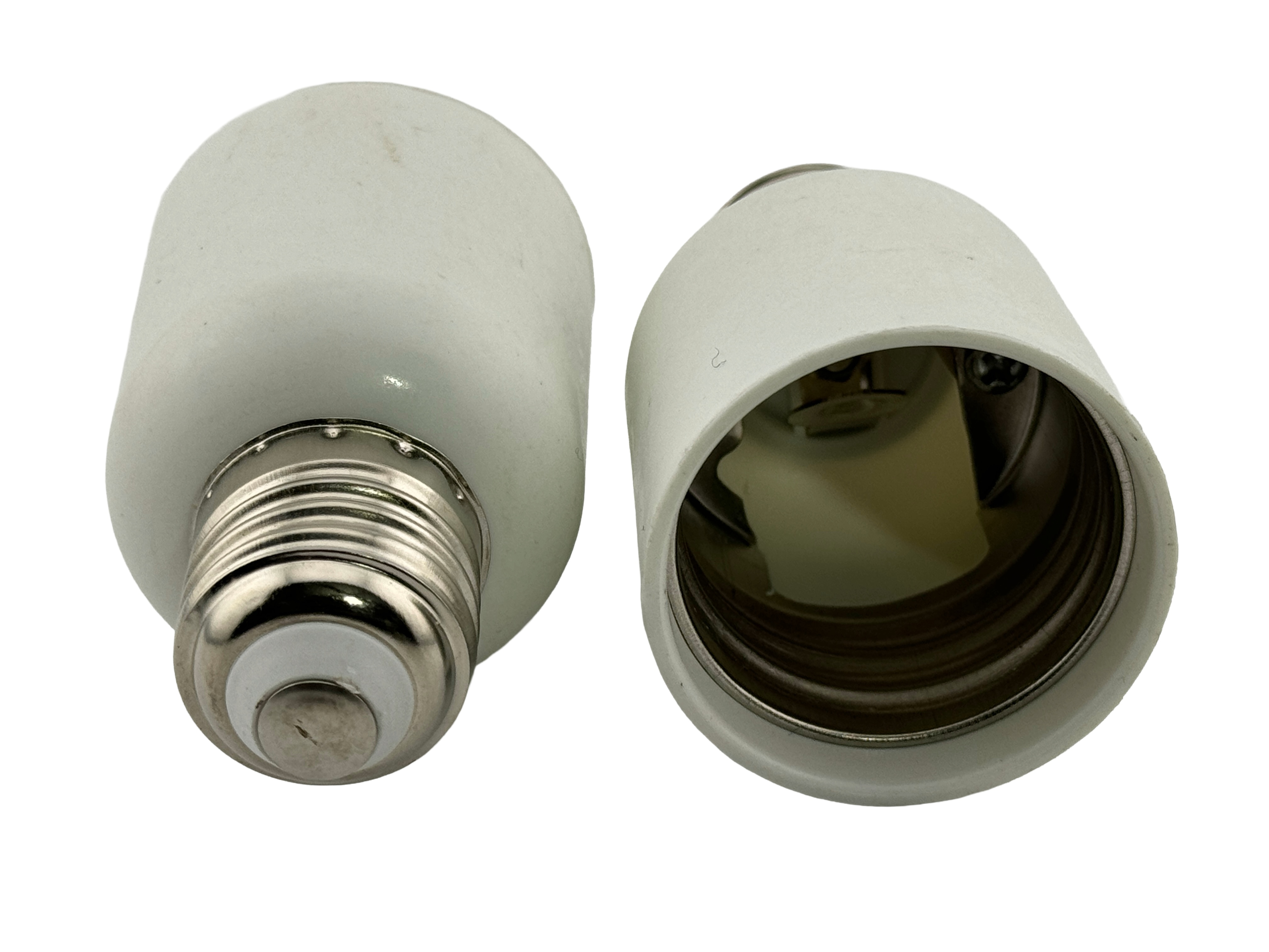Converts E12 (male) Candelabra base to E27 (female) standard Edison screw base. The rated current is 10 amps. The rated voltage is 220 volts. The rated power is 2200 watts. CE approved.