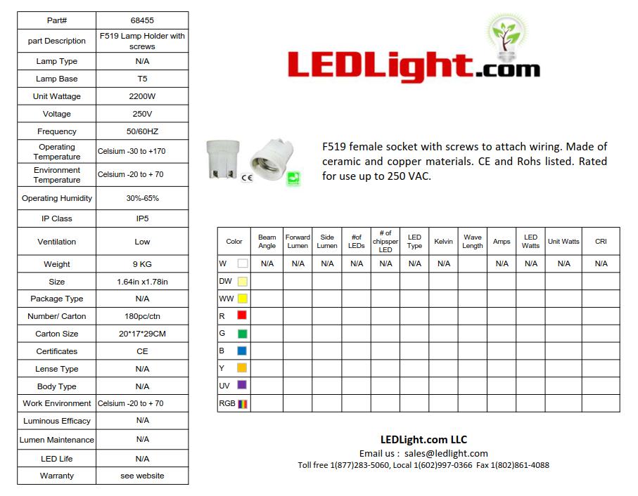 F519 female E26/E27 socket with screws to attach wiring. Made of ceramic and copper materials. CE and Rohs listed. Rated for use up to 4A@250 VAC. The VDE mark is a certification that indicates a product meets safety and quality standards for electrical, medical, and information technologies. The VDE mark is often required by law in many countries and is important for building customer trust. The S mark S Mark Certification, demonstrating compliance with legal European electrical safety requirements via third-party testing. The D Mark is A voluntary Danish electrical safety mark that indicates a product complies with European electrical safety standards. The D Mark is owned by UL and can be used to build trust with customers and as documentation for CE and UKCA marking. The socket is also VEM marked. Come with two screws to connect the wires to the socket. Compatible with either E26 or E27 lightbulbs. CE listed.