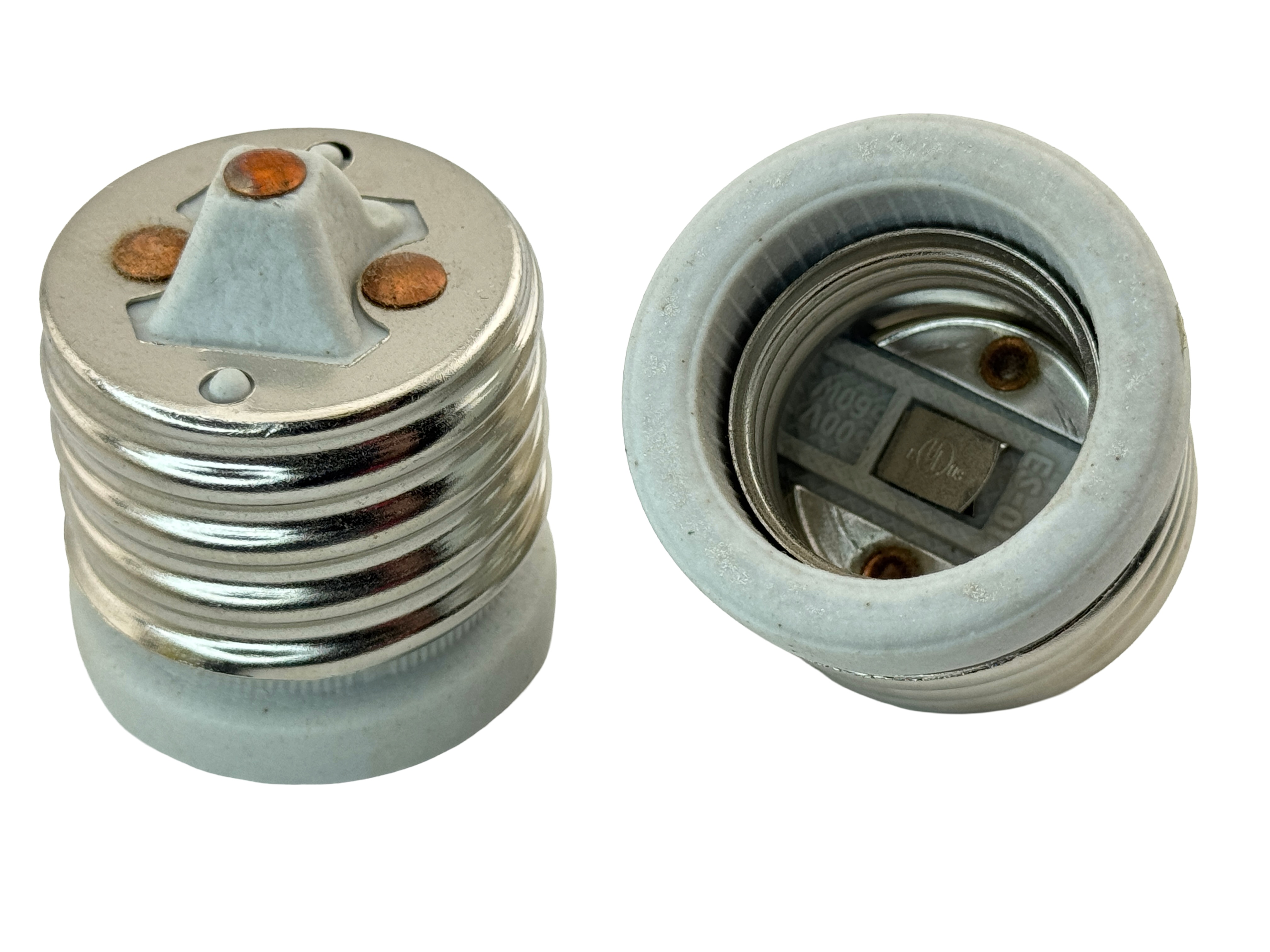 E27 (male) to E39 (female) adapter. Use this adapter to convert E27 to E39 Mogul base. CE and Rohs listed. Made of flame retardebt PBT and copper materials. Rated power 2200 watts, 250VAC, 10 amps. |