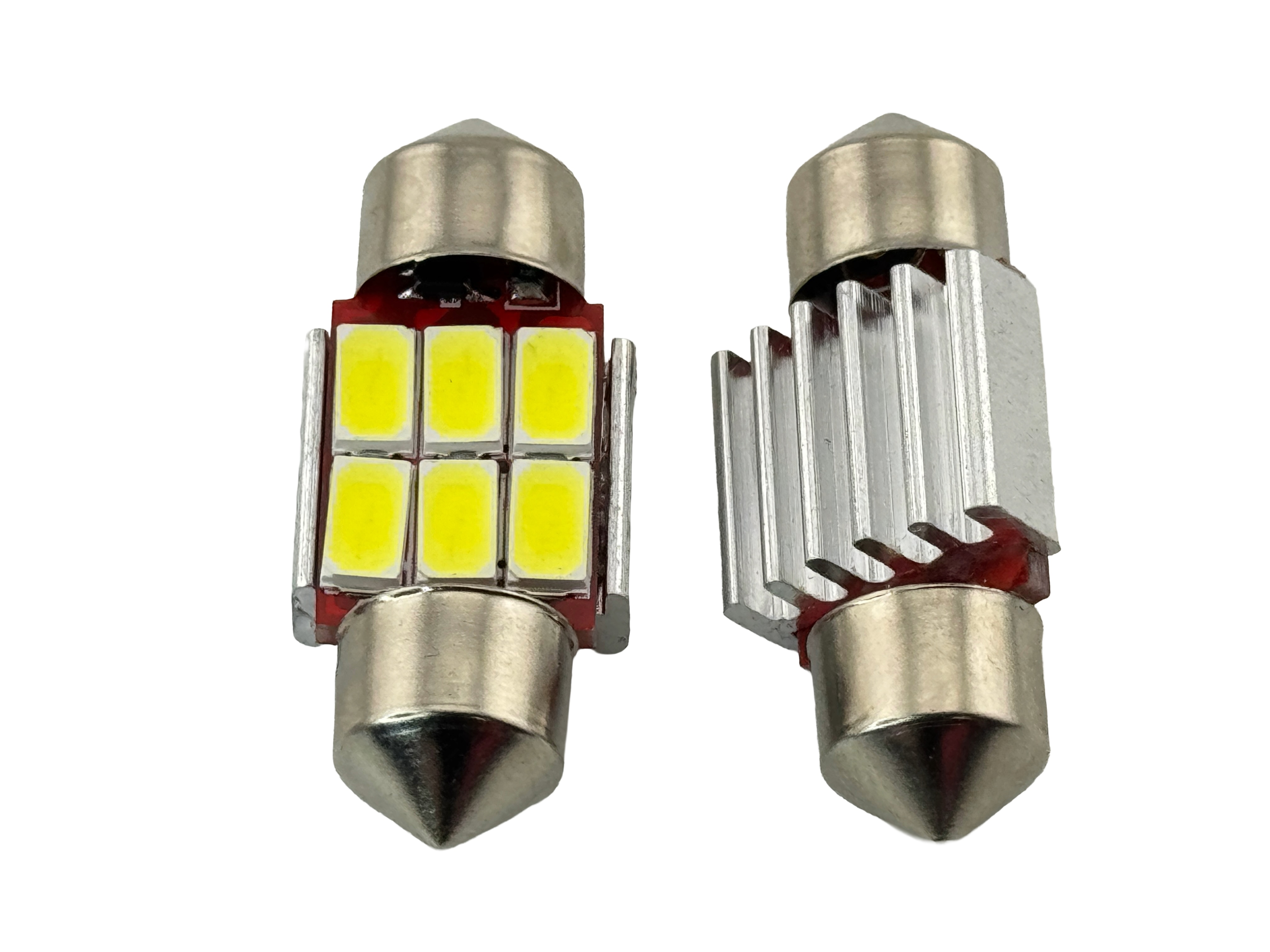 Rebaydo 2 pcs 6V Festoon LED Bulb T3 1/4 1 1/4 Length Non-Polarity are designed for approx. 6V systems with non-polarity functionality, making them compatible with both positive and negative chassis setups. Produces up to approx. 200 lumens while consuming approx. 2 watts, comparable to approx. 15 to 20 watt incandescent festoon bulbs, and features six 5730 SMD LEDs with approx. 180 degree light spread for wide and even illumination. Rated lifespan up to approx. 30000 hours and available in approx. 6000K white and approx. 3000K warm white, with warm white closely matching traditional incandescent color. Constructed with plated end caps for secure and corrosion-resistant connections and designed for durability without filament or glass breakage. Operating temperature range is approx. -40°C to approx. +85°C. Compatible replacements include 3021, 3022, 3175, 6428, 6430, 30922, DE3425, and C5W bulb types. These bulbs do not include load equalizers, which may be required to prevent hyper flashing or bulb-out warning errors. Dimensions are approx. 1 1/4 inches length × approx. 0.41 inches diameter. Rated for approx. 6V, approx. 2W, and draws approx. 0.24 amps at approx. 6.9 volts.