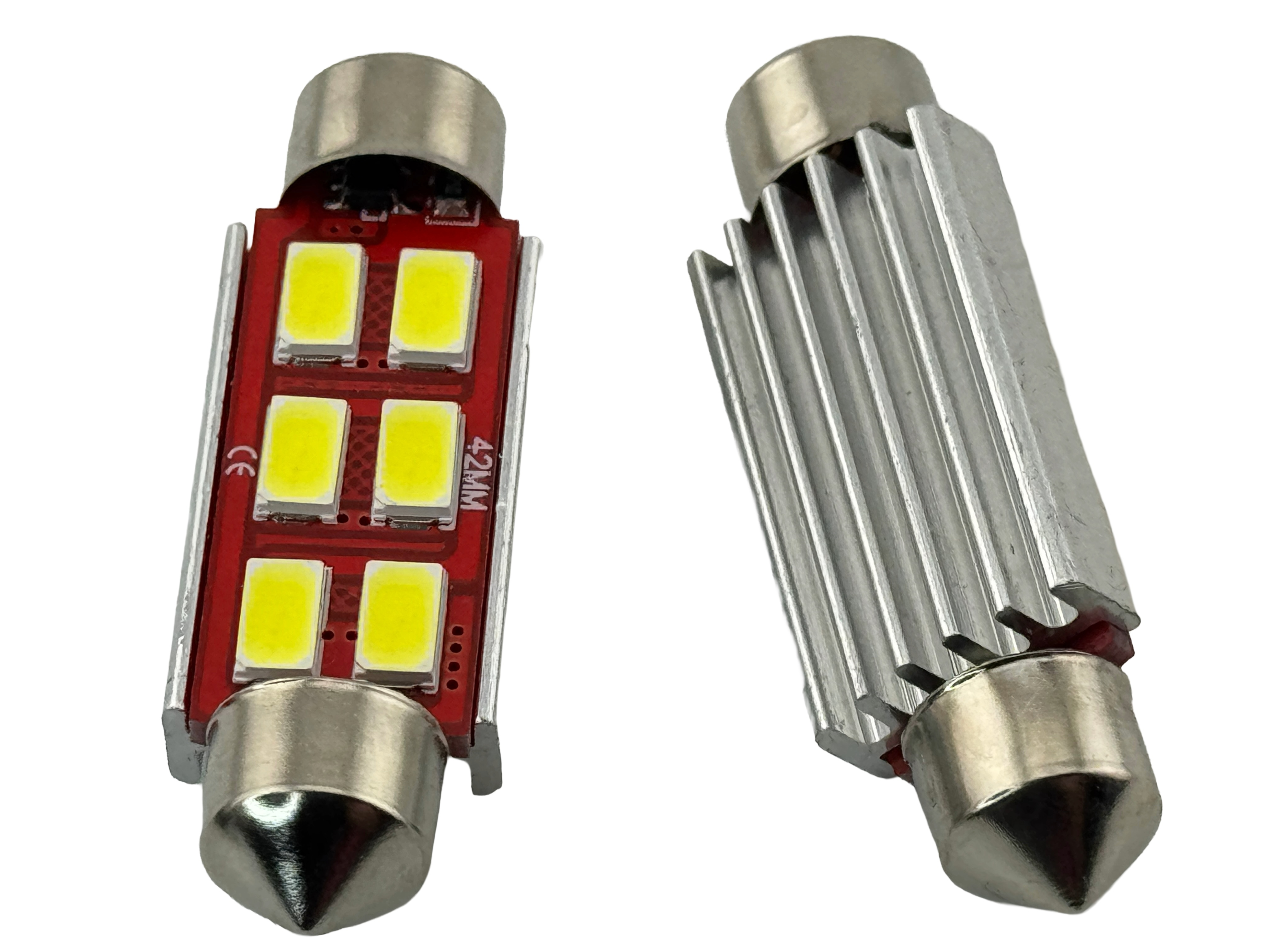 This LED Festoon lamp is very bright. However, its dimensions are much larger than described. The actual dimensions are: 42 mm long, body diameter of 12.7 mm, and the endcaps are 8.8 mm in diameter.