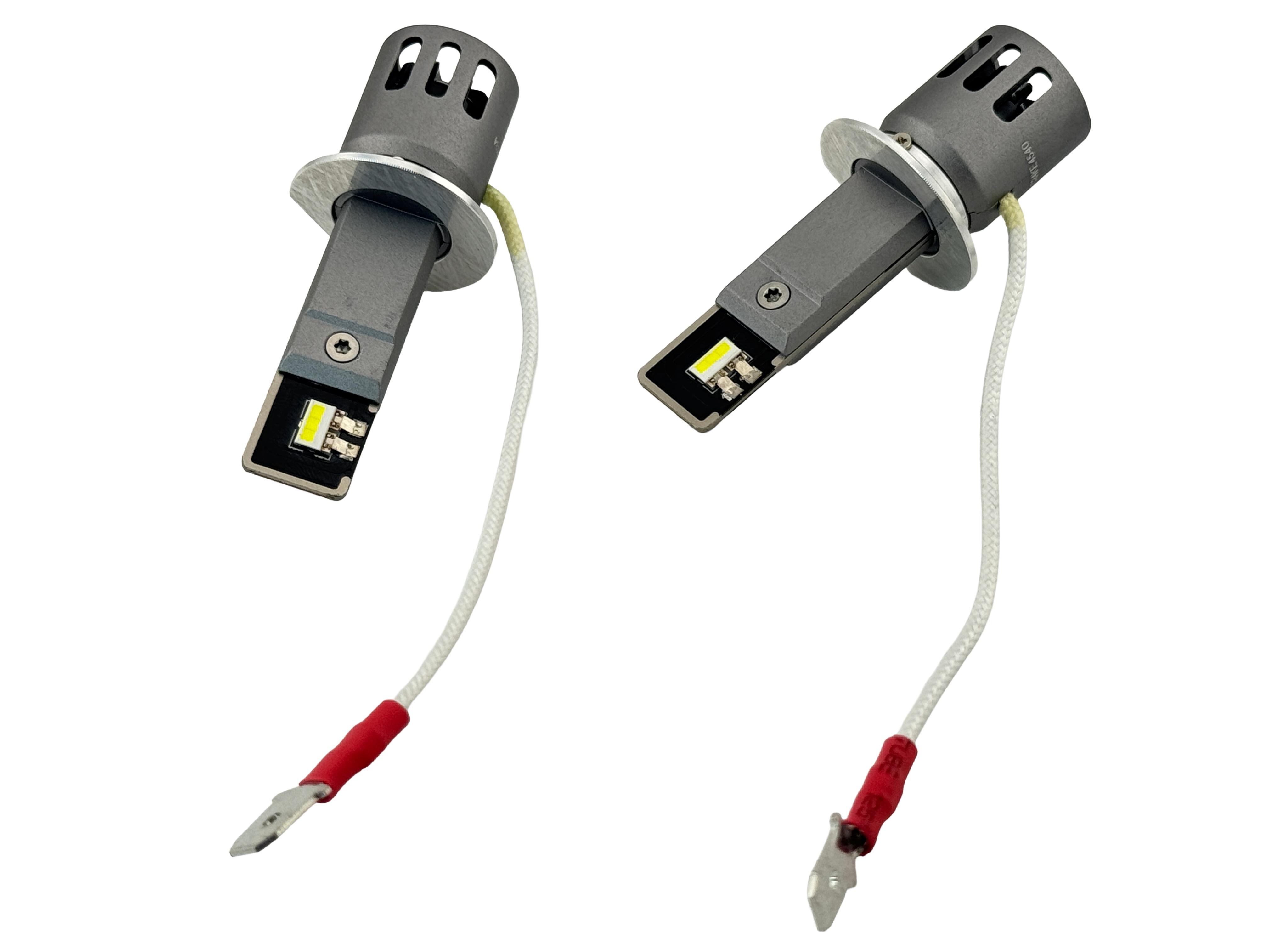 Rebaydo 2 pcs H1 LED Headlight Bulbs are designed for vehicle headlight applications requiring H1 base bulbs, operating on a wide voltage range from approx. 9V–40V (max approx. 45V) and compatible with negative ground systems only. Produces 3400 lumen per pair or approx. 1700 lumens per bulb. 6000K white color temperature. Is not dimmable due to the wide voltage input, with light output comparable to a 55 to 65 watt halogen bulb. Built-in 12 mm cooling fan helps maintain optimal operating temperature, with a rated lifespan up to approx. 30000 hours. Dimensions are 1.4 inches bulb length × 2.28 inches overall length × 0.94 inches maximum diameter, with 0.45 inches × 0.26 inches bulb size and approx. 4 inches wire length.