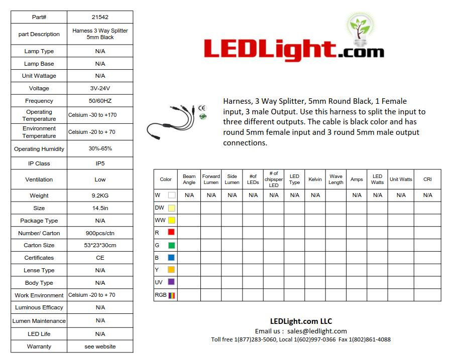 3-Way LED Light Harness Cable. Great for use with multiple lights. This harness allows you to plug 3 different tube lights, modules or other LEDs to the same power source. |