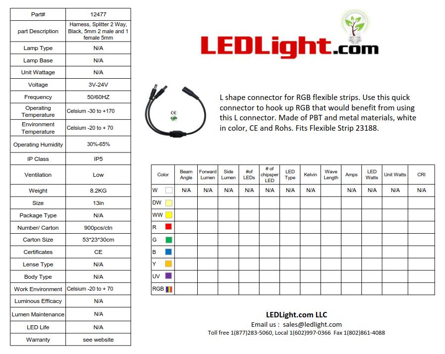 Use this harness to connect the LED Power Supply 65987 to flexible led light part number 49587 or to connect other 12 VDC products to the LED power supply. The harness length is 18 Inches. |