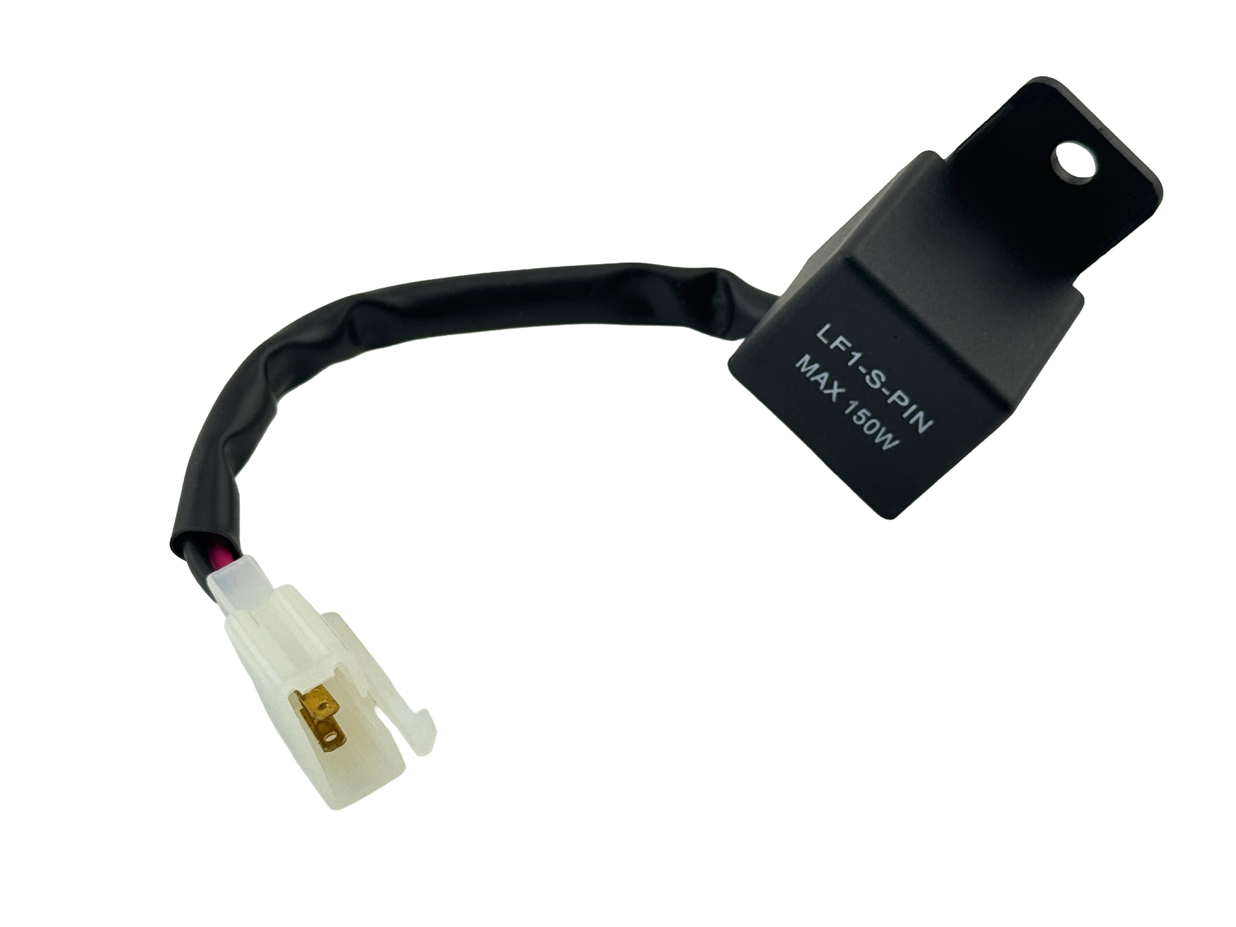 LED Flasher 2 pin for motorcycles, scooters, golf cart, go carts and Ebikes. This flasher is designed for motorcycles that have upgraded to LED lighting.This flasher relay will decode or eliminate hyper flashing due to LED lighting. This flasher can operate for 400 hours continues flashing. The flasher can handle maximum up to 65 Watts of lamps per side. The lamps can be either LED or incandescent or both. The flasher will flash from 60 to 120 times per second. The duty cycle is from 30% to 70% or 85 +-10 c/min. The lamp Wattage can be from 1 Watt to 65 Watts maximum power. The operating voltage is from 8 volts DC to 16 Volts DC. The rated voltage is 12 Volts DC. The operating temperature is from -40C to +80C. The flasher is CE and Rohs listed. The two terminals are L for load and + for the positive battery terminal. Please hook up your anode of your led bulb to the L load pin of the flasher. Please connect your cathode of your led bulb to ground. The flasher will solve or decode your hyper flashing so you do not have to worry about being pulled over for hyper flashing. The flasher has a built in bracket so you can mount this flasher so it is solid and will not vibrate loose. The standard Wattage of an incandescence bulb is 21 Watts. The flasher can handle 1 to 2 incandescent bulbs per side. The flasher is 12 Volts DC. Super clean and professional installation DIY. Very easy plug and play installation. Disconnect power, remove old flaher, insert new flasher, reconnect power. The flasher is made of ABS plastic and metal parts for a long life.