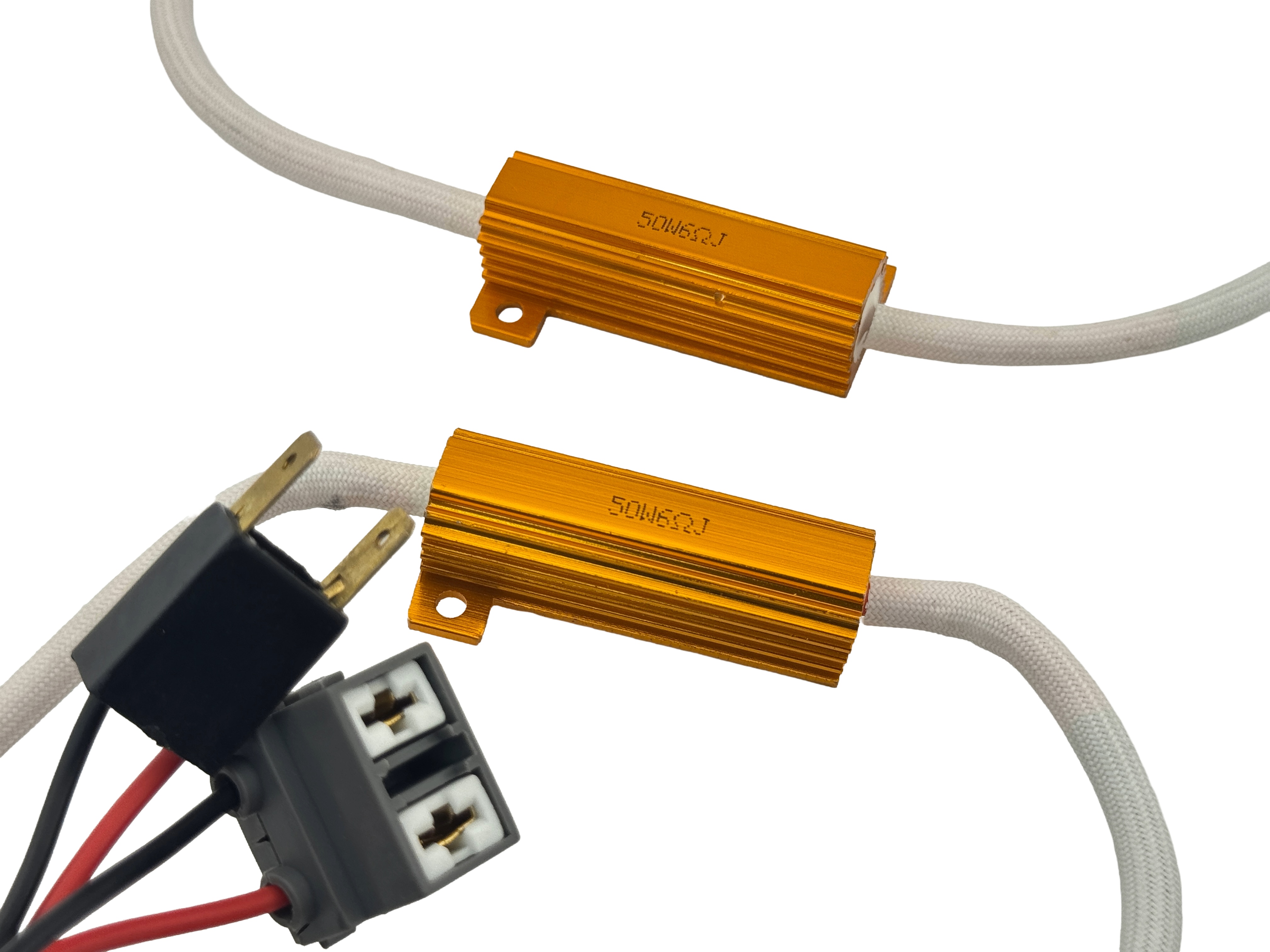 This Rebaydo 2pcs H7 inline load equalizer is designed to eliminate dashboard error codes for headlights, running lights, fog lights, or driving lights when upgrading to H7 LED or halogen bulbs. It stops light-out warnings from the vehicle’s computer and ensures proper operation of the bulbs. The adapter installs easily with a plug-and-play design and requires no cutting or crimping of wires. Two load equalizers are included per package, and each unit is tested before shipment. Compatible with vehicles using H7 sockets. CE and RoHS listed.