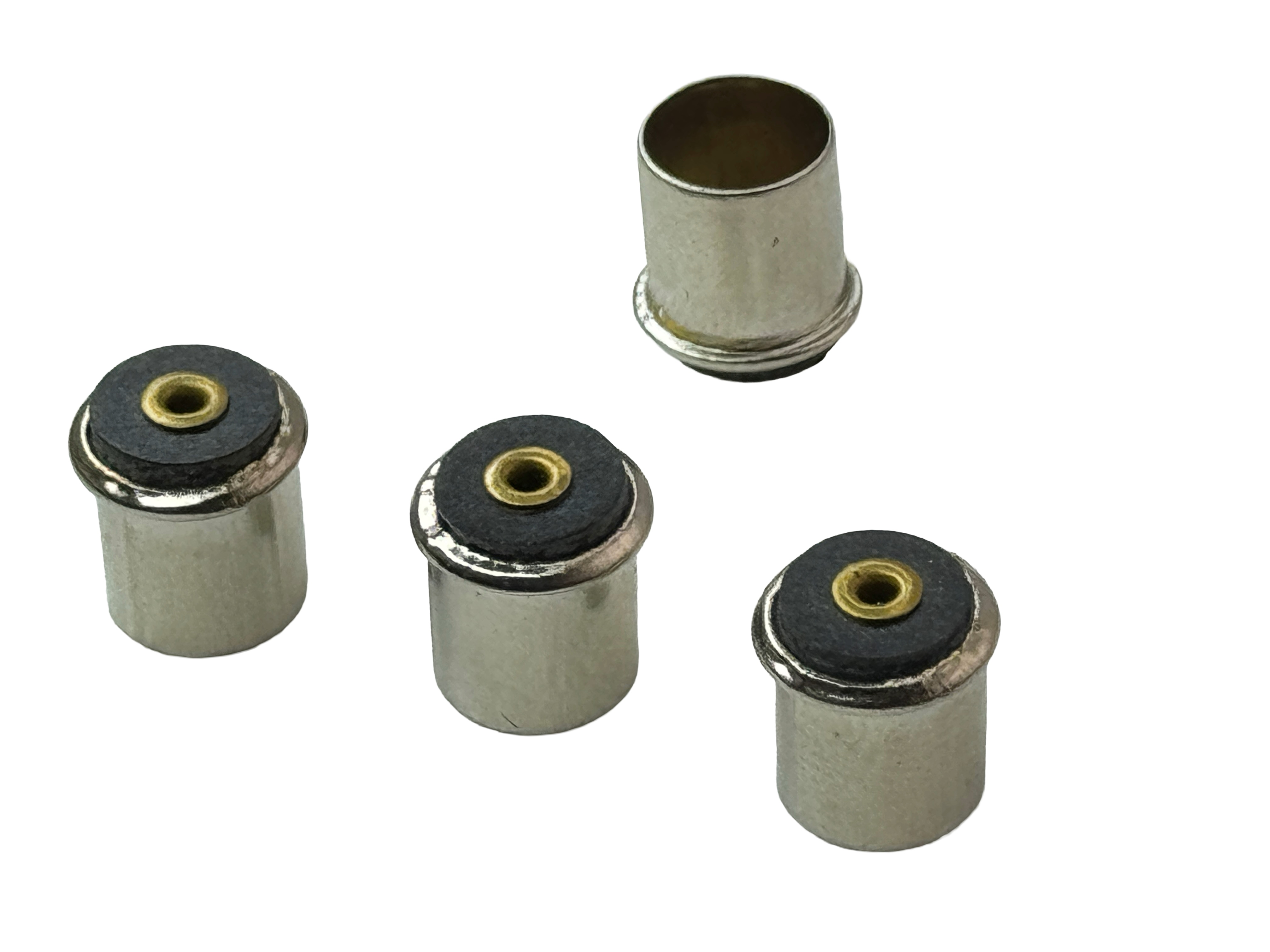 Rebaydo 4 pcs T1 3/4 Midget Flanged Cap Single Contact are designed to attach to miniature light bulbs, providing a single contact base for custom bulb assembly or replacement applications. Constructed from plated materials for durability, the base is solderable by inserting a wire into the base and soldering it to the single contact for a secure electrical connection. Dimensions are approx. 6.21 mm outer diameter (base) × approx. 5.77 mm inner diameter (base) × approx. 7.2 mm outer diameter (flange) × approx. 7.91 mm length. See product detail for warranty period. This is the cap that attaches to the light bulb. CE Rohs.