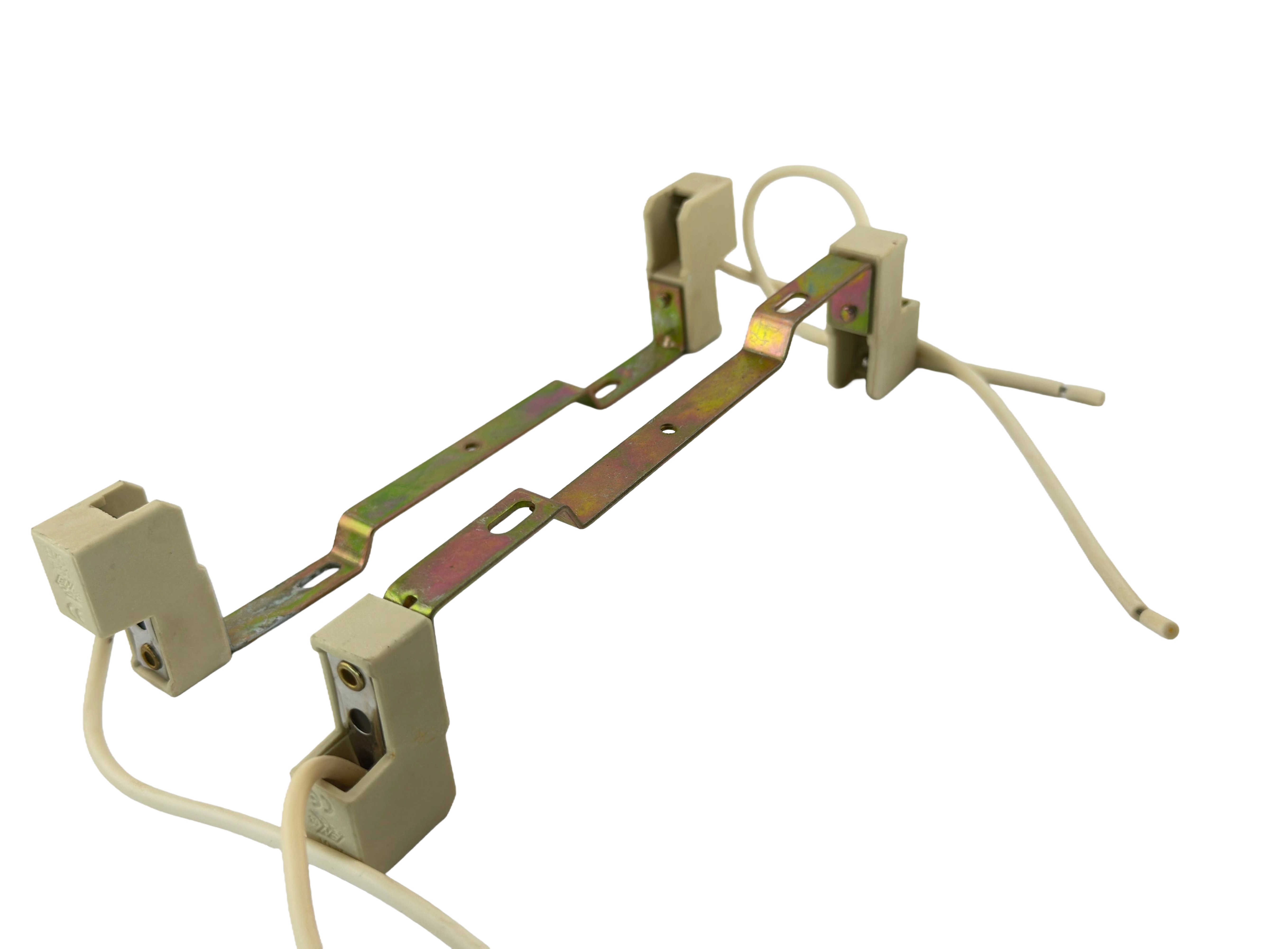 Rebaydo 2pcs R7S 189mm female socket with pigtail wires made of ceramic and metal plated materials for durability and high heat resistance, designed to handle high-temperature light sources such as R7S bulbs and provide a cost-effective solution by replacing the socket instead of the entire fixture, with approximate dimensions of 210 mm overall length, 185 mm socket spacing, 160 mm inner spacing, 43.3 mm height, and 14.8 mm width, rated up to 250VAC, 1,000 watts, and 2–4 amps at 50/60Hz, and functioning only as a connector without regulating, converting, or producing electrical power.