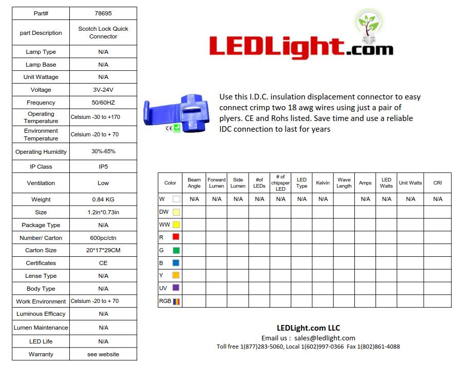 Use this I.D.C. insulation displacement connector to easy connect crimp two 18 awg wires using just a pair of plyers. CE and Rohs listed. Save time and use a reliable IDC connection to last for years