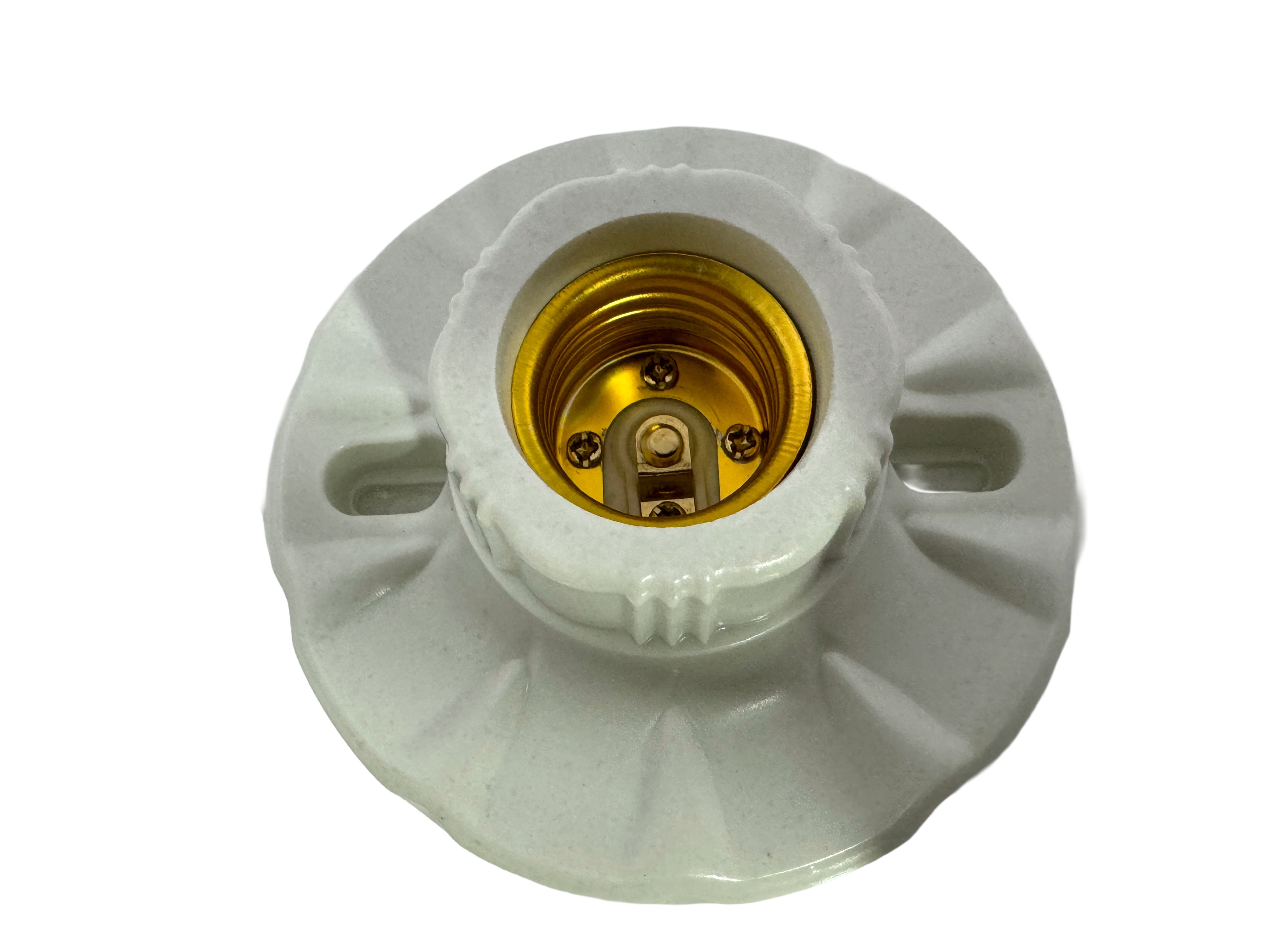 Rebaydo 2pcs Surface mount E26 or E27 Screw Base Socket. AC or DC use. PBT, Made from Anti-fire plastic. Perfect for adding light anywhere in your home, office, RV, Ect. Socket has two screw holes for mounting. Product measures 4.29" in width and 1.95" in height. The middle measures 2.17" wide. The light socket has two .1 Inch holes with screw clamps to clamp the wire in the wire hole.